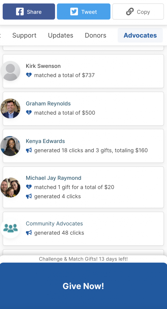 Prioritize Facebook. While it might not be the most “hip” platform these days, it is the most used platform for philanthropy. People are accustomed to making donations on Facebook.
